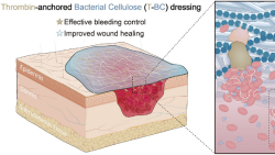 Die Ergebnisse der Forschung, die in der angesehenen Fachzeitschrift Advanced Materials veröffentlicht wurden, beweisen die Wirksamkeit des thrombinverankerten Verbandsmaterials. Es stoppt Blutungen in weniger als einer Minute und ist hervorragend biokompatibel mit menschlicher Haut.